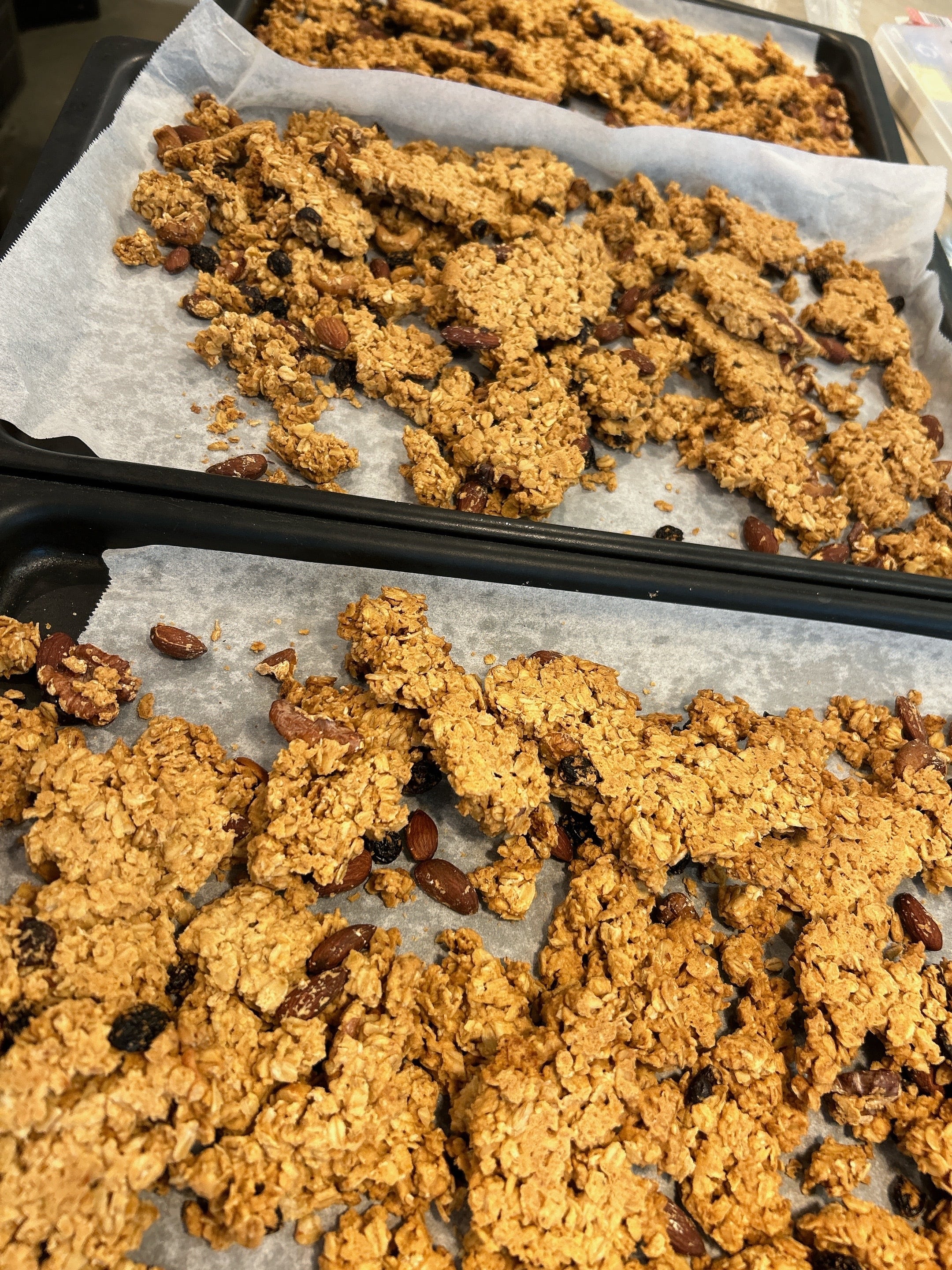 お菓子としてクッキーのようにそのままでも食べやすいように塊ができるように作っています。グルテンフリー デイリーフリー エッグフリー